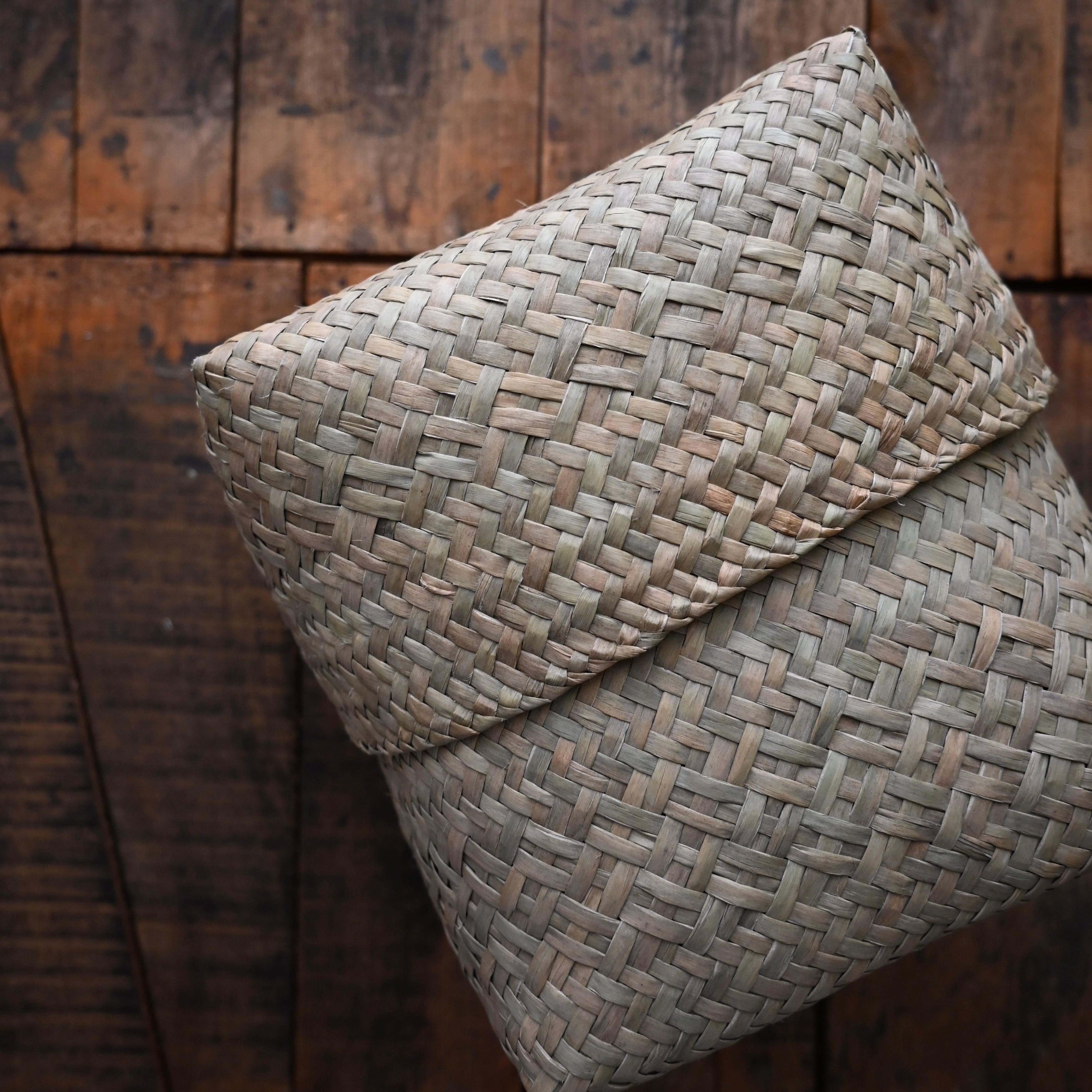 南国タイの豊かな自然が育んだ「カチュー(水草)」を用いて、細やかに編み込まれた模様がさりげなく浮かび上がる、味わい深いバスケットボックス。