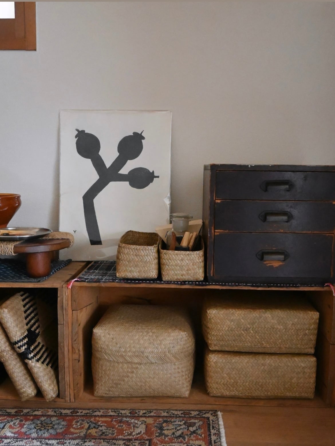 収納としてはもちろん、インテリアとしても暮らしに溶け込むバスケットボックスは日々の暮らしにそっと彩ります。