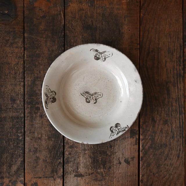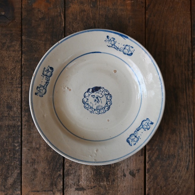 ■サイズ 直径:約19.7cm H:約3.5cm *焼成時の歪みや、高台裏面の凹凸により、平置き時にガタつきがある場合がございます。予めご了承ください ■ 素材/製造国 ・製造国:ベトナム ■ 注意事項 ・サイズや形・色などに個体差があります ・個体差や歪み・キズ・ヒビや欠けている箇所が含まれる場合があります ・釉薬の色ムラや・支柱の跡やバリ、土の凹凸がございます ・経年による風合いの変化やホツ(欠け)、割れ、貫入、裏面の刻印や凹凸が目立ちやすいものもございます。ソンベ焼の特性としてご理解ください。 ・お客様のモニター環境により実際のお色と多少異なる場合がございます ■ 発送・注文に関する情報や注意事項 ・ご注文から通常3〜5営業日で発送 ・複数点ご購入いただいた場合、商品同士を重ねたり等コンパクトに梱包する場合がございます。予めご了承ください - - - - - - - - - - - - - - - - - - ベトナム南部・ビンズオン地方(旧ソンベ省)で作られた 「ソンべ焼」 ぽってりとした素朴な質感とクリーム色の釉薬・手描きの絵付けが特徴で、長い間、家庭や食堂の食器として親しまれてきました。その背景には、ベトナムの独自の陶磁文化とともに、中国やフランスの影響を受けた歴史があります。 中国から伝わった染付の技法や、民間陶器の流れを汲みつつ、フランス植民地時代には、西洋のテーブルウェアのスタイルが融合。こうして、東洋と西洋の美意識が交わるなかで、ソンべ焼独自のデザインが生まれました。 現在では昔ながらの生産技術や窯元が減り、ヴィンテージとしてのみ出会うことができるものも。 昔ながらの技が生きる貴重な美ヴィンテージのソンべ焼は、長年使い込まれたことで、釉薬のかすれや細かな貫入(ヒビ模様)が生まれ、独特の風合いを醸し出しています。 ハンドペイントや印判で描かれる柄は、ベトナムの暮らしの身近な自然の植物や動物がモチーフとなっているのが特徴です。 インテリアのアクセントとして飾るのもおすすめです。ヴィンテージならではの唯一無二の魅力を、ぜひ暮らしの中で楽しんでみてください。 ■ソンべ焼に見られる特徴 ”ぽってりとした厚みのある素朴な質感” ソンべ焼は、土の風合いを活かした厚みのある器が特徴です。 手作業で成形されるため、均一ではなく、ひとつひとつ微妙に異なる形やゆがみが見られます。この素朴な温かみが、長年にわたって多くの人々に愛されてきました。 ”手描きによるのびやかな絵付け” ソンべ焼の魅力のひとつが、職人による自由な筆使いの手描き模様です。 花や鳥、幾何学模様などがシンプルな筆致や印判で描かれ、素朴ながらも味わいのあるデザインになっています。ひとつひとつ異なる表情を持ち、同じ柄でもわずかに違う仕上がりが楽しめます。 ”釉薬のムラや貫入(かんにゅう)” ソンべ焼は手作業で釉薬を施すため、色の濃淡やムラが見られることが多く、ひとつとして同じものはありません。また、長年の使用や経年変化によって釉薬に細かなひび(貫入)が入り、より味わい深い表情を生み出します。 ”重ね焼きの跡” 焼成時に器を重ねて焼くため、高台(底の部分)や縁に、小さな突起や釉薬の剥がれた跡が残ることがあります。これは当時の製法ならではの特徴であり、ひとつひとつ異なる個性を持つ証ともいえます。 ”ベトナムならではの色合い” ソンべ焼は、クリーム系の白地に青の絵付けが多く見られる一方で、黄色や緑、茶色などを用いたカラフルなデザインもあります。これは、中国の染付の影響を受けながらも、ベトナム独自のスタイルへと発展したことを示しています。 ”フランス植民地時代の影響” ベトナムがフランス統治下にあった時代、西洋のテーブルウェア文化の影響を受け、ソンべ焼にもフランスの陶器に見られるようなデザインやフォルムが取り入れられました。そのため、アジアとヨーロッパの美意識が交差した独特の雰囲気を持っています。 これらの特徴が組み合わさり、ソンべ焼は「素朴でありながら味わい深い器」として親しまれてきました。現在では生産が減り、希少な焼きものとなっています。 - - - - - - - - - - - - - - - - - - ■ お手入れ/取り扱い注意事項 ・ベトナムでは暮らしの中で器として使用されていますが、当ショップでは雑貨・装飾品として販売しております。 ・経年による傷や欠けがある場合がございます ・洗ってからご使用ください ・直射日光の当たらない風通りの良い場所でのご使用ください ・ワレの原因になるためぶつけたり、重いものを重ねるのはお避ください。 ・詳細はトップページ〈日々のお手入れ方法〉をご一読下さい ■ 発送・注文に関する情報や注意事項 ・ご注文から発送まで通常3〜5営業日を目安にしています ・複数点ご購入いただいた場合、商品やボックス同士を重ねたり等コンパクトに梱包する場合がございます。予めご了承ください - - - - - - - - - - - - - - - - - -